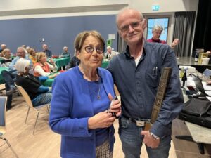 Op de foto ziet u de winnaars Denise Hamann en Ad van den Berg. Zij behaalden een recordscore van 76,46%